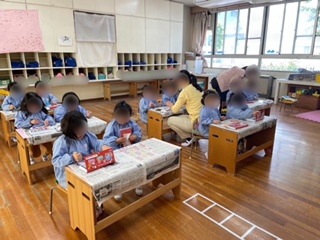 こいのぼりをつくったよ!(もも組) 公開日 2023/05/02 更新日 2023/05/02 お知らせ ?こいのぼりの形の色画用紙に、シールを貼るのがとっても楽しかったようです!(シールをめくったり貼ったりするのは、指先を使うので、幼児期にとって、大切な活動です!) もう1つのこいのぼりには、たんぽに絵の具をつけてポンポンポンとおしました。好きな色を選んで、自分のおしたところに色がつくのが楽しかったね! 最後に、丸い画用紙にクレパスでこいのぼりの目をかいて、完成です!! いいね(0)
