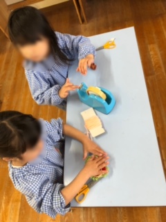 お弁当が始まるもも組のために、ばら組・ゆり組が何やらつくっていました。