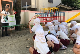 ゆり組も、アゲハチョウの姿が見えなくなるまで、見守りました。また幼稚園に飛んでくるといいね。