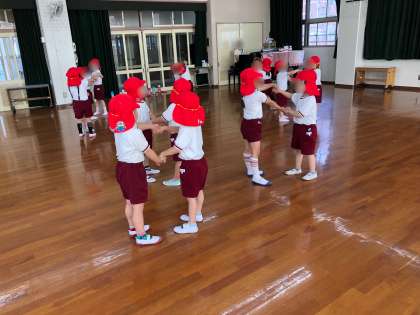 この日は、友達と2人組になって「せんたく」のふれあい遊びをしましたよ!コロナ禍ではなかなかできなかったふれあい遊びですが、やっぱり友達と一緒に遊ぶのは楽しかったようです。ゆらゆら洗ったり、ぎゅっとしぼったり…。いろいろな友達と関わって遊んでいました。最後に、ばら組みーんなで手をつないで大きな洗濯機になりましたよ。