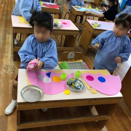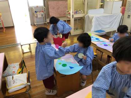 「見て〜!いっぱい貼ったよ〜」「できた〜!」と嬉しそうに、先生や友達に見せていました。