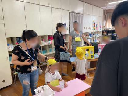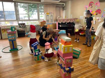 なつまつり(その2) 公開日 2023/07/12 更新日 2023/07/12 お知らせ お客さんになったお友達は、おうちの人といろいろなお店を回って、遊びました。 フォトスポットや的あて、休憩場所も用意されていて、すべてのお店を回った後も楽しめる工夫をしてくださいました。子どもたちが楽しめるお店がたくさんでした♪楽しかったね! いいね(0)