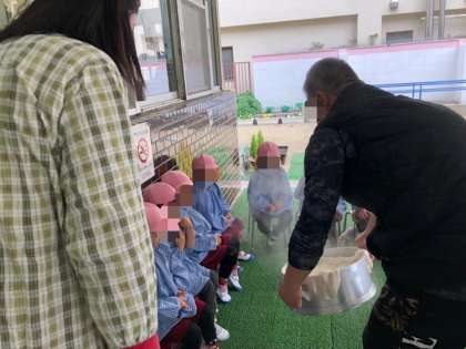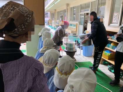 登園の時から園庭にもち米の蒸されたいい匂いが漂っていました。