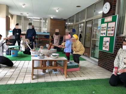 有志の保護者の方も一緒にもちをついてくれました。また、PTAの方々が前日準備からたくさんお手伝いしてくださいました。