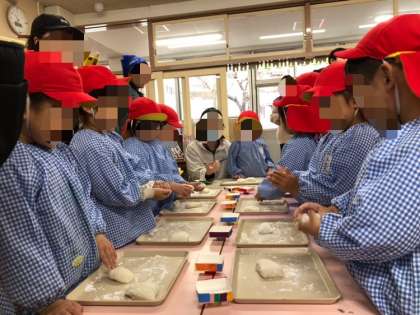 おもち ふわふわ〜 公開日 2023/12/26 更新日 2023/12/26 お知らせ もちがつきあがると、保育室に行って早速丸めてみました! ゆり組は自分で2つにちぎって、ばら組・もも組は2つのもちをそれぞれ丸めました。「ふわふわ〜」「あったか〜い」と、もちの感触を五感を使って感じていました。 それぞれ飾り付けて準備していた三宝にもちをのせて、鏡餅ができました!お昼から「だいだい」をつくって、鏡餅にのせました。 みんなでつくった鏡餅を各家庭に飾って新年を迎えてくださいね。 いいね(0)