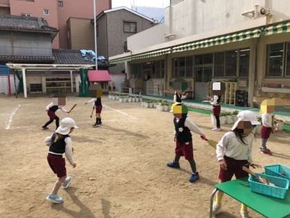 「カンッカンッてしてたのに、難しいなぁ〜…」と、なかなか羽子板に当たらず苦戦している子どももいましたが、正月遊びを楽しんでいました♪