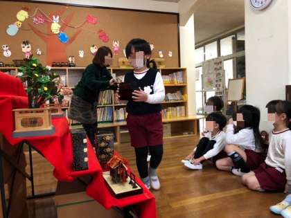 飾り見本の写真をにもとに、「〇段目の右側」などひとつひとつ大切に飾りました。幼稚園では一番大きいお兄さん、お姉さんのゆり組ですが、飾りながら「あかりをつけましょ ぼんぼりに〜…」と楽しそうに歌う姿がかわいかったです♪