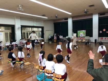 幼稚園も、子どもたちも、先生も、お家の人もみんな1つ大きくなったので、みんなで「お誕生月なかま」をしました。コロナ禍にはできなかった、みんなで歌ってたくさん体を動かして楽しい誕生会になりました。