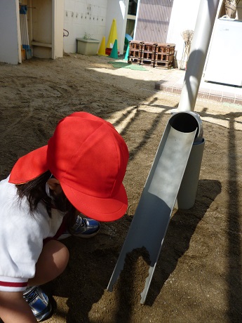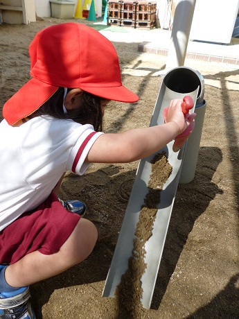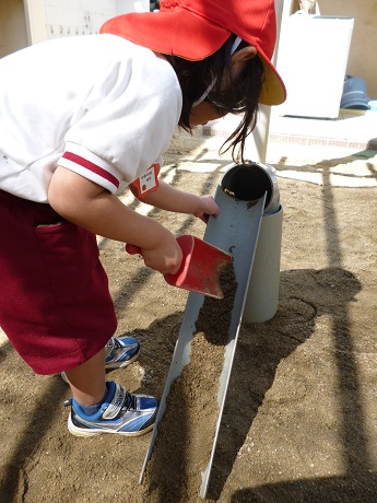 どうやら、斜めのとゆの中に砂を山盛りにしたい様子です。