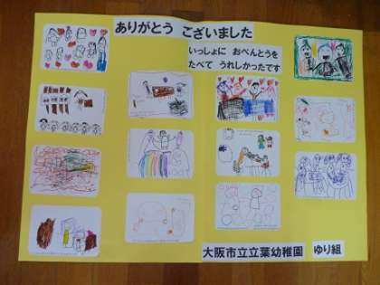 ゆり組さんが、6月に一緒にお昼ごはんを食べたおじいさんおばあさんに、お手紙をかきました