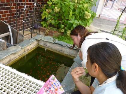幼稚園に来てすぐは、池の下の方に隠れていましたが、