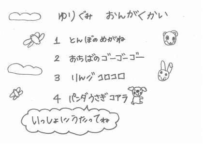 そして、今日のなかよしデーでは、「ゆりぐみおんがくかい」と題して、なかよしデーのお友達にも歌を聴いてもらいました☆
