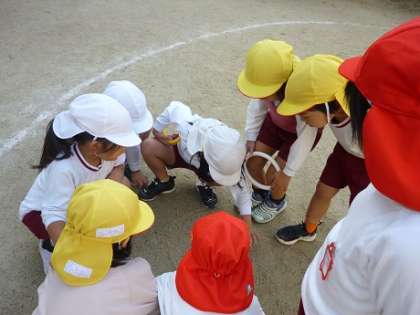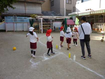 ゆり組さんが、運動会の競技に取り組んでいたリレー