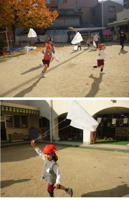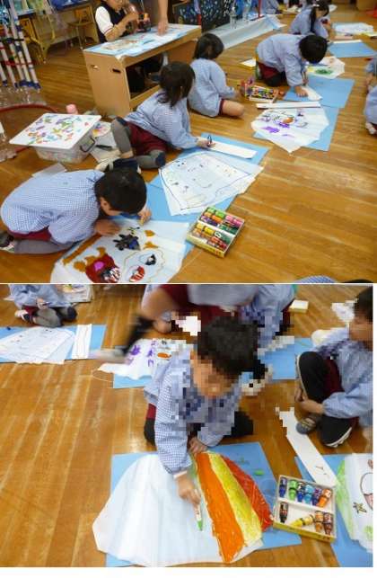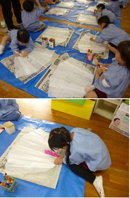 凧の糸を短くして、園庭で凧あげをしていましたよ
