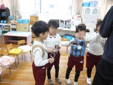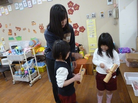 年長児がいろいろな楽器に触れていました