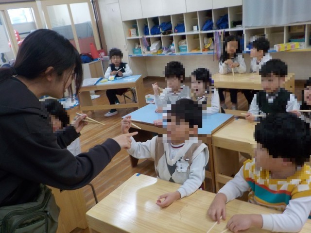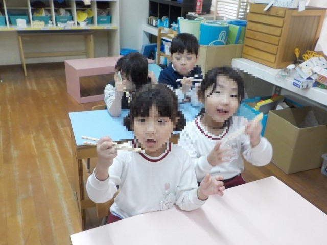 正しい持ち方は、何回も繰り返すことで身に付きます!お家でもお箸の持ち方について話をしていただけたらと思います。