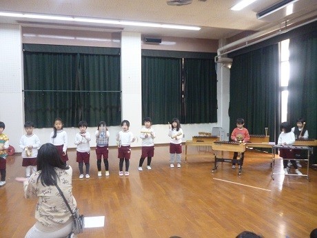 一生懸命に取り組んでいる、子どもたちの劇遊びや楽器遊び