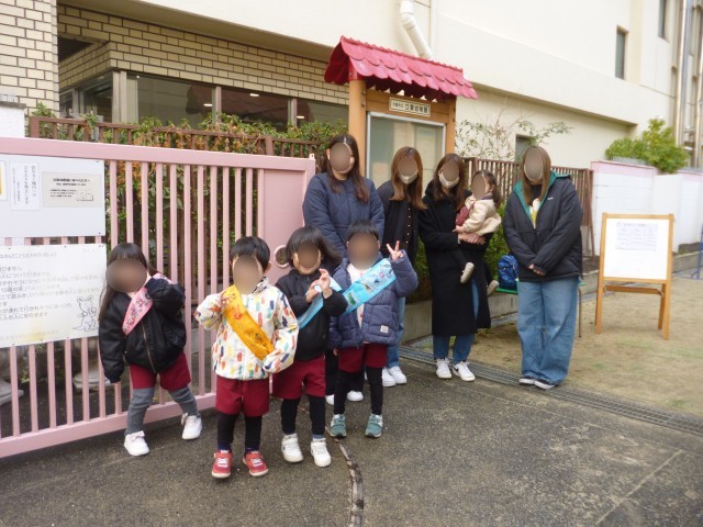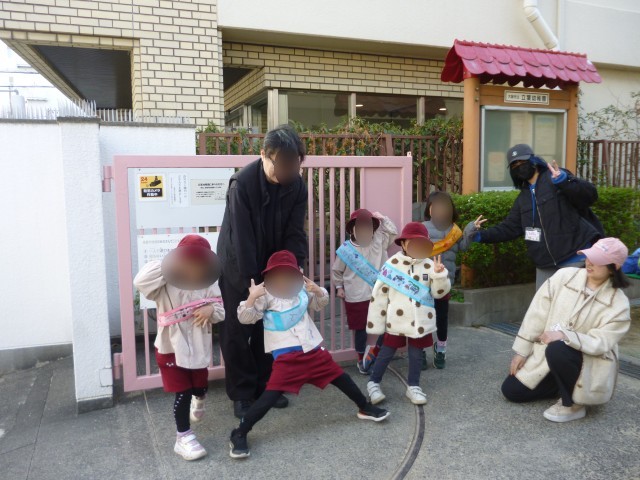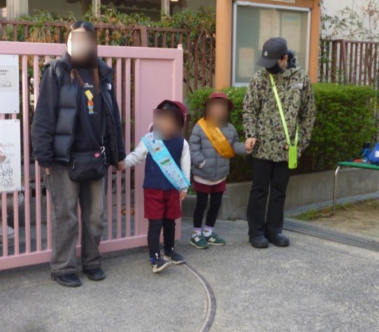 今週は、ばら組さんがお家の方と一緒に朝のあいさつ当番をしていました