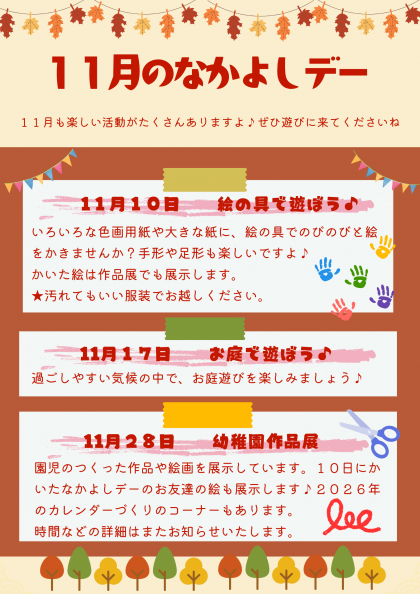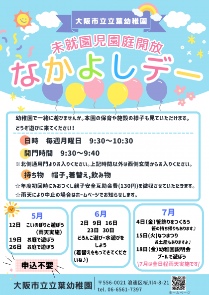 本日予定しております未就園児園庭開放(なかよしデー)は、9時現在雨が降っておりま...