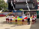 ゆり組とばら組が、一緒にパラバルーンをして遊んでいました。 運動会は残念ながら...