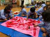 芋掘りで芋と共にたくさん穫れた芋づるを幼稚園に持ち帰りました。 先生や友達と一緒...