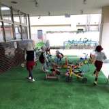 ?作品展を終えて片付けていた遊具などを、ゆり組と担任、養護教諭が力を合わせて元の...