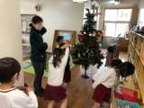 ?好きなものを選んで、ツリーに飾り付けをしました。 キラキラした飾りや、可愛らし...