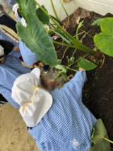 ゆり組がサトイモを収穫しました。 サツマイモと違って黒い皮で、少しザラザラしてい...