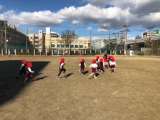 ?幼稚園の近くのグラウンドで凧揚げをしました。 凧揚げ前には、準備体操をしたり、...