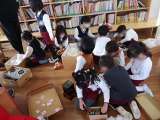 ゆり組が分担して箱から出し、一つ一つ大切にひな壇に並べました。健やかに育ち、幸せ...