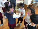 ?発表会が終わっても、子どもたちの遊びは続いています。もも組がゆり組に、楽器の扱...
