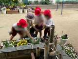 午後、ゆり組が、ばら組に見送られ、畑に出かけました。途中の公園で、タンポポやクロ...