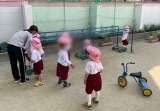 朝は泣いている子も、園庭に出れば笑顔になって元気いっぱい遊びだすもも組のこどもた...