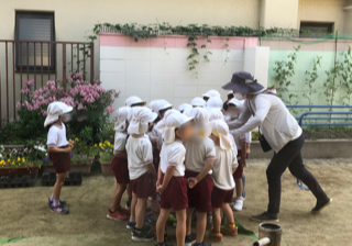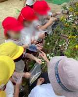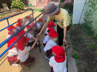 お昼から、ゆり組とばら組が畑に出かけました。雑草抜きをしたり生長を見ながら世話を...