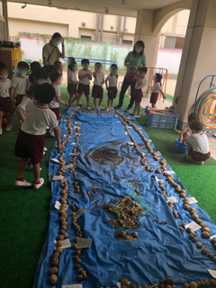 ゆり組が収穫したジャガイモを10個ずつ数えました。全部で456個もありました! ...