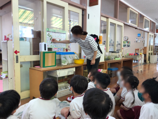 ? ばら組が先生に食べ頃を教えてもらって、美味しそうな“まんまるお腹のスナップエ...