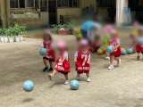 2回目のサッカー遊び。コーチにも親しみをもって関わり、元気に挨拶してスタートしま...