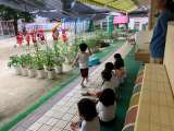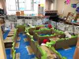 保育室やピロティでは、輪投げや段ボール迷路、風船プールなど、楽しい遊びをたくさん...