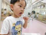 もも組さんは、今日から歯ブラシを持ってきましたよ 大好きなお弁当を食べたあとに...