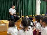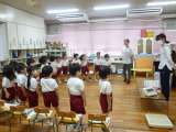 関西こどものとも社の方に絵本の読み聞かせに来ていただきました。 初めにお友達の...