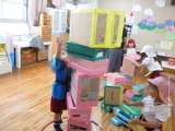 ばら組が絵の具で絵をかいていました。 子どもたちがのびのびとかけるよう、担任...