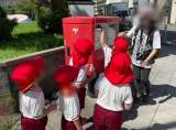 おじいちゃんおばあちゃんへの絵手紙を投函
