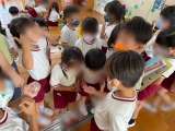 もも組にたくさんのカブトムシの幼虫が生まれたので、ゆり組と分けました。元気に育つ...