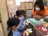 幼稚園で実ったヘチマを乾かしてタワシを作ることにしたばら組。乾いたヘチマを振って...
