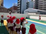 1学期に遊んだプール。ばら組が“ヤゴ”を探しに行きました。落ちないように、ヤゴを...