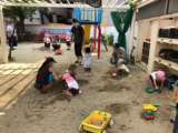 未就園児とゆり組が、園庭で好きな遊びをしました。砂場で一緒に遊んだり、つかまえた...