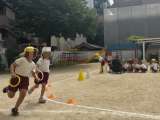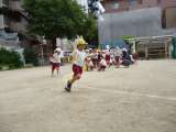 ↑好きな遊びで楽しんでいたリレーを、クラス全体で取り組んでいました。 途中でバト...