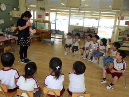 どうして虫歯になるのか動画を見ました。ご飯の後だけでなく、おやつの後も歯みがきをして虫歯にならないように気を付ることを知らせました。