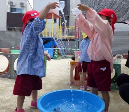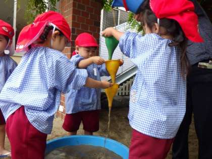 日々の遊びのつながり 公開日 2024/06/04 更新日 2024/06/04 保育の様子 昨日3歳児はジョウゴを使い、水を流すことを楽しんでいました。今日は何をするのかなと見ていると、砂場でジョウゴを見つけ、砂まじりの水を流し始めました。何度も繰り返すうちに友達と重ねて流す遊びを見つけて笑っていました。日々の遊びのつながりを実感します。明日の遊びに期待をもつことができるような保育環境を整えていきたいと思います。 いいね(0)