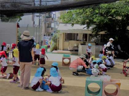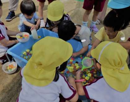 地域の友達が遊びにきてくれました。園庭でスーパーボールやシャボン玉など、季節の遊びを楽しみ、5歳児の歌声も聞いてもらう機会となりました。同じ地域の友達に親しみをもつとても大切な一日です。保護者の皆様には幼稚園での活動を知っていただく機会でもありますので、是非お越しください。次回は7月2日(火)に遊戯室でお話の会を実施します。